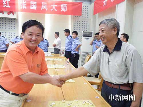 圖為徐天紅(圖左)與戰(zhàn)平對手握手言和。 王超 攝