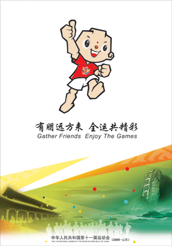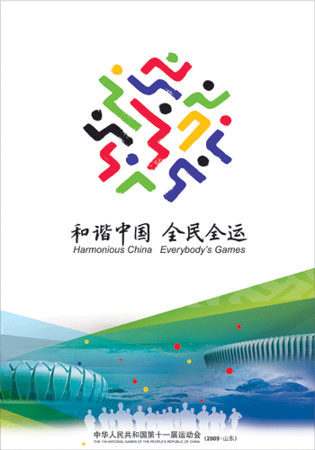 設計中選用了武術、籃球、帆船三個項目為主要內(nèi)容,武術動作的背景中融合了群山和松樹的內(nèi)容;籃球項目動作的背景中融合了奔騰黃河的形象;帆船項目則在風帆中融入了大海的壯觀景象。動感的運動人形與畫面背景中具有代表性的海、山、黃河融為一體,著力表現(xiàn)祖國河山的壯麗和秀美。