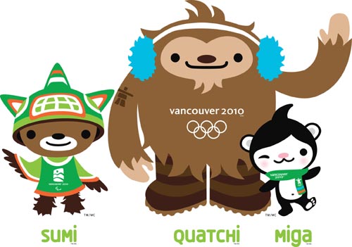 冬奧會的吉祥物是名叫“米加”的北極熊和名叫“魁特奇”的北美野人,而冬季殘奧會的吉祥物則是名叫蘇米的雷鳥精靈。