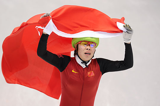 中新網(wǎng)2月21日電 在今天中午結(jié)束的冬奧會(huì)短道速滑女子1500米決賽中,孤軍出戰(zhàn)的中國(guó)選手周洋力壓各路名將,以破奧運(yùn)會(huì)紀(jì)錄的2分16秒993的成績(jī)奪冠,為中國(guó)代表團(tuán)添得第三金。