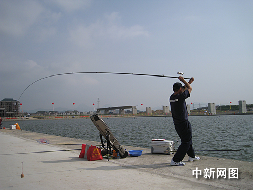 圖:選手正在拋竿釣魚。