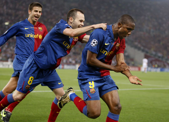 巴薩第70分鐘擴(kuò)大比分,范德薩開大腳,普約爾中場(chǎng)右側(cè)斷球策動(dòng)反擊,埃托奧右路低傳被勾出,但哈維再度得球右肋突至禁區(qū)前沿起球,梅西后點(diǎn)距門6米處頭球吊射入遠(yuǎn)角,2比0!