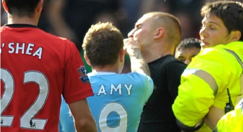 曼城悍將全武行 貝拉米直拳猛擊曼聯(lián)球迷臉(圖)