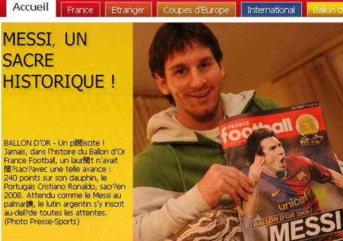 中新網(wǎng)12月1日電 今天上午,《法國足球》雜志公布了2009年金球獎(jiǎng)的最終結(jié)果,阿根廷籍的巴塞羅那球星梅西首度榮膺此項(xiàng)殊榮。