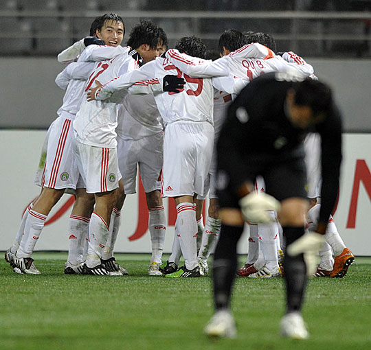 法新社驚嘆稱,“中國的男人們只用了四分鐘就攻入了第一例進球!鼻ㄓ衣吠黄坪髾M傳,中場球員于海插上頭球攻門得手。第27分鐘,楊昊在得球后妙傳郜林,后者擴大了比分。鄧卓翔在第60分鐘也接到了曲波的助攻,并攻破了韓國隊的大門。2005年東亞四強賽的冠軍中國隊防守也很出色,韓國隊甚至難以形成有效的傳中。