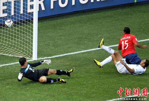 開(kāi)場(chǎng)后2分鐘,智利隊(duì)獲得了開(kāi)場(chǎng)之后的第一個(gè)前場(chǎng)定位球。費(fèi)爾南德斯任意球直接射門(mén),球繞過(guò)人墻擦著橫梁飛出底線!此后智利隊(duì)7號(hào)桑切斯頻頻在右路制造威脅,憑借一次假摔騙到任意球,禁區(qū)內(nèi)10幾名球員陷入一片混亂,最終智利隊(duì)一腳射門(mén)被門(mén)將撲到。9分鐘時(shí)桑切斯送出一腳漂亮的腳后跟傳球,但伊斯拉停球過(guò)大,被對(duì)方后衛(wèi)解圍。之后智利繼續(xù)圍住洪都拉斯球門(mén)轟炸,比達(dá)爾距離球門(mén)大約25米起腳怒射,對(duì)方門(mén)將脫手,所幸最后抱住了球。