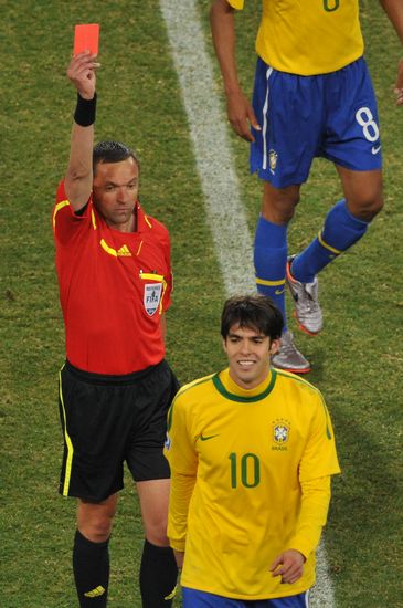 中新網(wǎng)6月21日電 第二張黃牌!裁判員出示紅牌將卡卡罰下!在世界杯小組賽巴西隊對科特迪瓦隊的比賽中,巴西隊中場核心卡卡吃到紅牌下場,并且可能面臨被追加處罰的危險。作為世界足球先生而在世界杯賽場被罰下,卡卡直追法國惡漢齊達(dá)內(nèi)!