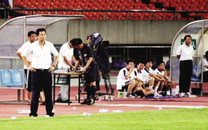 鬧劇的開(kāi)始是上半場(chǎng)比賽第25分鐘,綠城隊(duì)長(zhǎng)傳打申花身后,蔡楚川上演千里走單騎的好戲,揚(yáng)科從身后奮起直追,就在蔡楚川入禁區(qū)的剎那,揚(yáng)科閃現(xiàn)成功搶截。蔡楚川倒地,主裁判未予理睬——這讓現(xiàn)場(chǎng)的綠城球迷十分不滿(mǎn),吼聲一片!然而此時(shí),申花替補(bǔ)席一陣騷動(dòng),賈秀全顯得極為激動(dòng),他在抗議:此球早已越位。主裁判趕到教練席邊,詢(xún)問(wèn)邊裁剛剛的情況,賈秀全依舊不依不饒,他似乎對(duì)此前綠城外援喬爾丹的防守動(dòng)作非常不滿(mǎn),認(rèn)為這應(yīng)該是一個(gè)明顯的犯規(guī)。主裁判在多次警告無(wú)效之后,只能向憤怒的賈秀全出示紅牌,賈秀全默默走向球員通道,手里拿著一部對(duì)講機(jī),只能遙控指揮比賽。