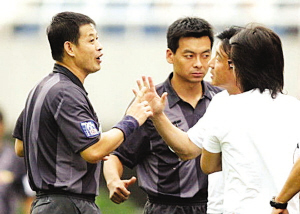 第17輪中超最后的兩場(chǎng)角逐昨天進(jìn)行,北京國(guó)安主場(chǎng)以3:0戰(zhàn)勝長(zhǎng)沙金德,陜西中新浐灞隊(duì)在主場(chǎng)1:2不敵山東魯能隊(duì)。陜西中新隊(duì)成耀東賽后情緒有些難以控制,他非常憤怒地暗指了對(duì)裁判的不滿。