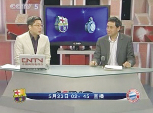 而屏幕下方顯示的字幕圖像居然擺了一個令人啼笑皆非的超級“烏龍”,在字幕上顯示決賽對陣雙方時居然出現(xiàn)巴薩的隊(duì)徽,對陣雙方并不是拜仁VS國米。用當(dāng)下網(wǎng)絡(luò)時髦的話來說,就是衛(wèi)冕冠軍巴薩“被”晉級了。這個大“烏龍”,相信眼尖的球迷都發(fā)現(xiàn)了。
