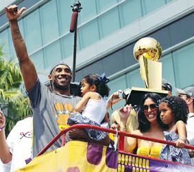 北京時(shí)間今晨,湖人第15次冠軍游行,在洛杉磯市中心盛大舉行,從斯臺(tái)普斯中心到大體育館,一路上,球迷身著紫金戰(zhàn)袍,臉上畫(huà)著油彩,高舉雙臂,祝賀湖人凱旋。
