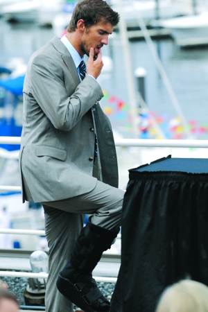 在9月15日的那集節(jié)目中,奧尼爾將與菲爾普斯在泳池一較高下。地點(diǎn)定在巴爾的摩,菲爾普斯的教練鮑曼將改投敵營,指導(dǎo)奧尼爾。屆時,菲爾普斯將讓奧尼爾50米。不過,即便如此,“鯊魚”要想勝過“飛魚”恐怕也很難,因此節(jié)目組透露,比賽還會出現(xiàn)諸多有利奧尼爾的情況,例如,奧尼爾將擁有一位贏得過奧運(yùn)游泳金牌的運(yùn)動員,而“可憐”的菲爾普斯只能孤身作戰(zhàn)!拔視┥戏茽柶账谷ツ暝趭W運(yùn)會上穿的游泳衣,這也許得花掉我一個半小時的時間,但我還是會穿的!眾W尼爾說。在發(fā)布會上,奧尼爾還信誓旦旦地表示:“顯而易見,我可以擊敗他(菲爾普斯),大家走著瞧吧。”
