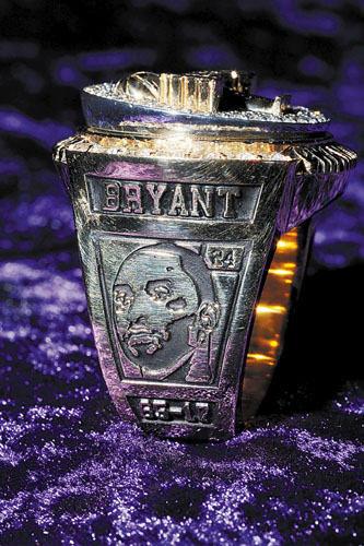 以前的總冠軍戒指都要分別刻上不同球員的名字和號碼,新版湖人總冠軍戒指又作出創(chuàng)新,增加了球員頭像。每一枚總冠軍戒指又會選出一顆鉆石刻上湖人的“L”字母,不同戒指的這些“L”所處鉆石的位置又會不同,必須通過高倍顯微鏡才能看到,因此每人的總冠軍戒指都是自己獨(dú)一無二的身份證明。