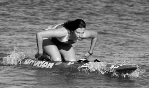 這純粹是“誤導(dǎo)”!幾乎每一分每一秒,海上交通事故、風(fēng)暴、迷霧、傷病、暴曬以及鯊魚,都可能要了這三個(gè)勇敢女人的命,因?yàn)樗齻兊墓ぞ摺獩_浪板根本沒(méi)法保證安全。這是種相當(dāng)原始的方式,三個(gè)女人每次跪著或者趴在沖浪板上用手劃2小時(shí),然后換人替班。每人每天劃4次,24小時(shí)日夜兼程,以保證每天100公里以上的進(jìn)度。沖浪板除了載人,就沒(méi)有放其他物資的空間了,所以她們只隨身帶一小包,里面只有3件東西:干衣服、照明燈和救生煙火。