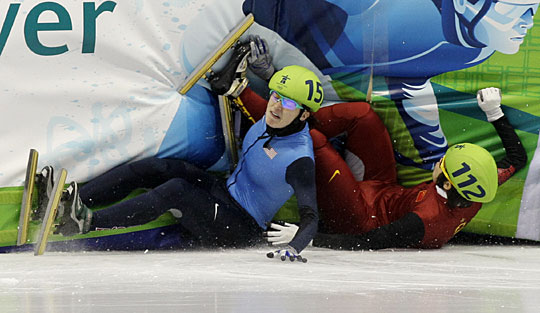 在王濛所在小組比賽行至倒數第二圈時,美國選手試圖超越王濛。此時包括王濛在內的前三位選手均被帶倒,王濛摔出賽道。比賽結束后,裁判判王濛犯規(guī),無緣決賽。
