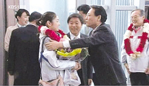 據(jù)悉,本月2日,溫哥華冬奧會韓國代表團回國之時,韓國文化部長柳仁存親自到仁川機場迎接。在此期間,KBS一直負責(zé)整個過程的錄制過程,柳仁存部長被拍到在給金妍兒佩戴花環(huán)時,曾試圖擁抱金妍兒,但金妍兒顯然對這一舉動比較介意,有意地向后退縮,但柳部長仍強行兩手抱住金妍兒,表情更是有些“猥瑣”。