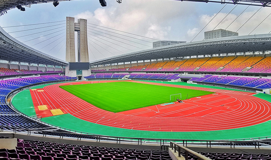 上城體育中心體育場為亞運會足球項目比賽場地,位于杭州市上城區(qū),地處亞運村西北方向且相距約9.5公里。總建筑面積16063平方米,觀眾席位數(shù)13544座。
