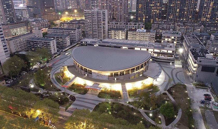拱墅運河體育公園體育館為亞運會乒乓球、霹靂舞項目比賽場館及訓(xùn)練場館,位于杭州市拱墅區(qū),地處亞運村西北側(cè)且相距約14.5 公里,含比賽館和熱身館。熱身館位于副館,通過地下通道與主館相連,賽后將作為全民健身中心,提供籃球場、羽毛球場等公共體育健身空間。拱墅運河體育公園體育館總建筑面積約2.2萬平方米,觀眾席位數(shù)6800余座。