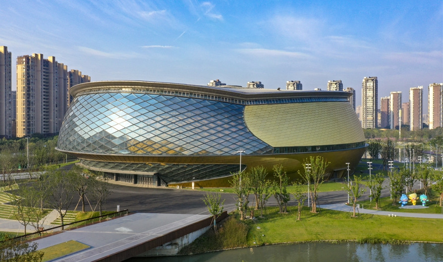 中國杭州電競中心位于拱墅區(qū),承擔(dān)亞運會電子競技比賽項目比賽,西北側(cè)隔東新路與上塘河世遺生態(tài)帶相鄰,東北側(cè)為宣杭鐵路及杭寧高鐵,南側(cè)隔石祥路與城市次中心“杭州新天地”相鄰。該場館占地12838平方米,建筑面積79790平方米,座席4380個,為新建場館。