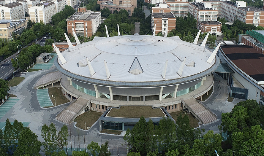 浙江大學(xué)(紫金港校區(qū))體育館為亞運會籃球項目比賽場館,位于杭州市西湖區(qū),在亞運村西北側(cè)且相距約22公里。該場館位于浙大紫金港校區(qū)內(nèi),東側(cè)為風(fēng)雨操場,北側(cè)為游泳館,空間高度整合,幾個場館形成一個綜合性體育場區(qū)??偨ㄖ娣e16954平方米,觀眾席位數(shù)4821座。