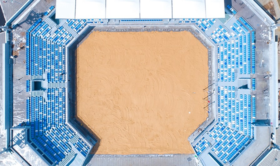 寧波半邊山沙灘排球中心為亞運會沙灘排球比賽場地及訓(xùn)練場地,位于寧波市象山縣,占地面積約6.4萬方,含比賽場地2片,熱身場地2片,訓(xùn)練場地3片,大約可容納3000名觀眾觀賽。距離運動員村約3公里,地塊緊鄰大海,交通便利。