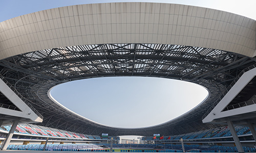 溫州奧體中心體育場為亞運會足球項目比賽場館,位于溫州市龍灣區(qū),含主比賽場及熱身場,為市區(qū)的標(biāo)志性建筑和體育文化的重要景觀點。總建筑面積70500平方米,觀眾席位數(shù)50000個。
