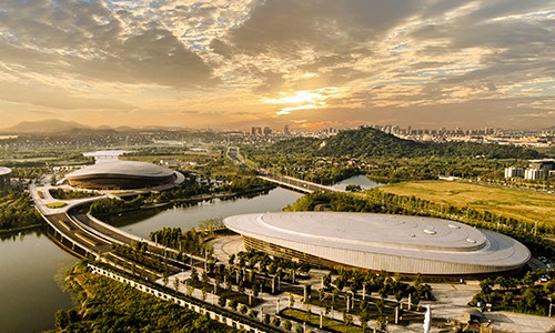 杭州奧體中心國博壁球館為亞運會壁球項目比賽場館及訓(xùn)練場館,位于杭州市蕭山區(qū),是2016中國G20杭州峰會主會場。國際博覽中心交通方便,場館設(shè)計兼具江南意蘊與現(xiàn)代簡約。中心占地面積19萬平方米,建筑面積85萬平方米,是集會議、展覽、餐飲、旅游、酒店、商業(yè)、寫字樓于一體的多元業(yè)態(tài)綜合體。
