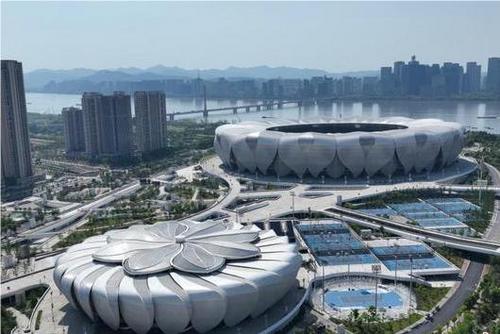 杭州奧體中心游泳館為亞運會游泳、跳水、花樣游泳項目比賽場館及訓(xùn)練場館,位于杭州市蕭山區(qū),總建筑面積53959平方米,觀眾席位數(shù)約6000個,是一個集游泳、跳水比賽和訓(xùn)練為一體的專業(yè)運動場館。場館擁有雙館合一的設(shè)計理念、獨特的流線造型,結(jié)合雙層全覆蓋銀白色金屬屋面,和兩翼張開的平臺形式……作為世界上最大的兩館連接體非線性造型場館,無論白天夜晚,顏值都超高。