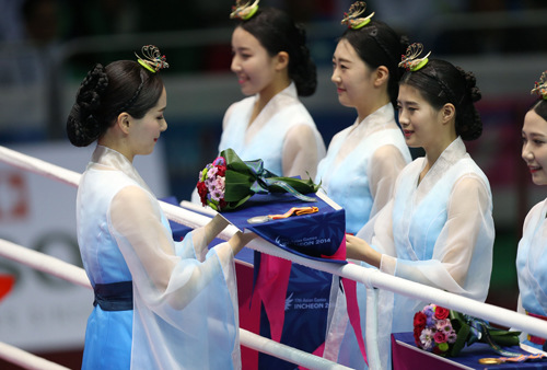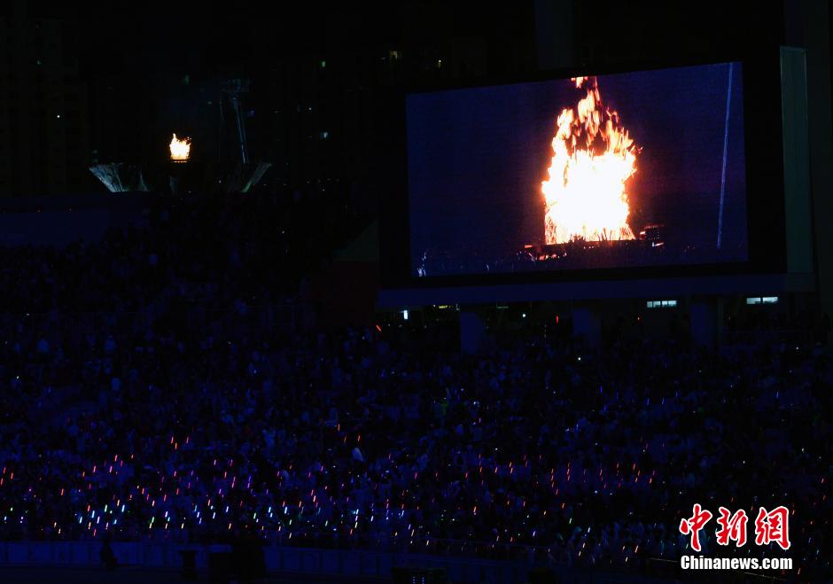 4日晚,亞奧理事會(huì)主席艾哈邁德·法赫德·薩巴赫親王宣布第十七屆亞運(yùn)會(huì)閉幕,燃燒了16天的亞運(yùn)圣火在韓國仁川的主體育場熄滅。韓國總理鄭烘原和朝鮮高級(jí)代表團(tuán)成員出席了當(dāng)晚的開幕式。