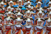 一群武術(shù)小羊亮相廣州國(guó)際體育演藝中心,為亞運(yùn)男籃比賽中韓之戰(zhàn)暖場(chǎng)。