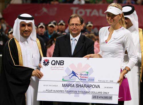 總獎金250萬美元的WTA一級大賽多哈公開賽冠軍周一凌晨成為俄羅斯美少女莎拉波娃最新的戰(zhàn)利品,她在決賽中擊敗同胞茲維娜列娃,將自己今年的連勝紀錄擴大到14場。