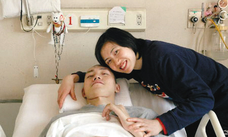 周蘇紅的到來慰藉了湯淼的心。兩人在訓(xùn)練、治療之余總有說不完的話,周蘇紅開朗的性格鼓舞著湯淼,笑容也常掛在他的臉上:“她就是我的勇氣、我的希望”。通過此前半年的訓(xùn)練,湯淼的雙臂,尤其是手部已經(jīng)恢復(fù)得很靈活,語言表達能力也與常人無異。周蘇紅的到來更是加速了愛人的恢復(fù),湯淼如今竟可以臥坐在病床上獨自使用餐具進食。