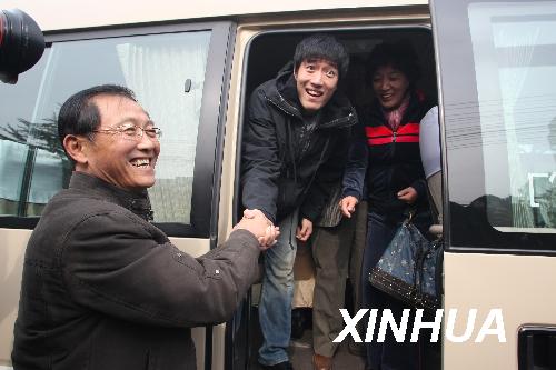 12月3日,劉翔(中)登上汽車準(zhǔn)備出發(fā)。