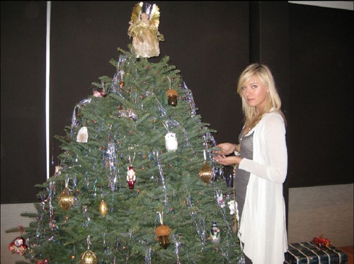 莎拉波娃圣誕樹旁留倩影 金發(fā)披肩楚楚動人(圖)