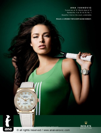 引子 昨日,網(wǎng)壇美少女伊萬諾維奇在個(gè)人官網(wǎng)發(fā)布了最新的勞力士新產(chǎn)品代言平面廣告,性感嫵媚的照片一舉登上各大網(wǎng)站顯著位置,憑借此廣告伊萬也成為莎娃后最受廣告商青睞的網(wǎng)球明星。雖然競技體育以成敗論英雄,但就商業(yè)價(jià)值來談,世界第一不等于一切,只有才貌雙全,才能成為廣告商的寵兒。