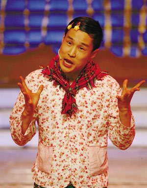 這期《新聞周刊》的文章說,外表上看來,小沈陽很謙虛禮貌,很難想像他畫著大濃妝、帶著發(fā)卡、穿著禮服在臺上喝啤酒、講下流笑話、活蹦亂跳、大喊大叫的樣子。最近一次演出中,他穿著帝王式的絲質(zhì)長袍,卻背了一個粉紅色的Hello Kitty的書包。