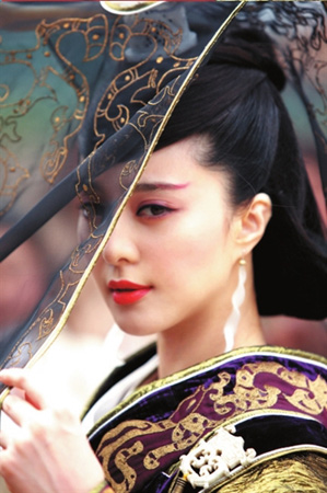 服裝造型指導陳同勛介紹,莊姬的發(fā)飾是無價的,“莊姬頭上的冠,是總制片人陳紅一個酷愛古玩的朋友的鎮(zhèn)宅之寶,年代久遠,說服他借給劇組花了很大工夫。拍這組戲時,七八個保鏢整天跟著看護,陳紅每天都心驚肉跳,生怕有什么閃失,范冰冰緊張到上廁所都不敢低頭!标愅瑒渍f,莊姬是故事的核心人物,陳凱歌拍攝時用了許多特寫,因此他很注意細節(jié),“她的每縷頭發(fā),都做到盡量均勻!庇浾咭讝|方