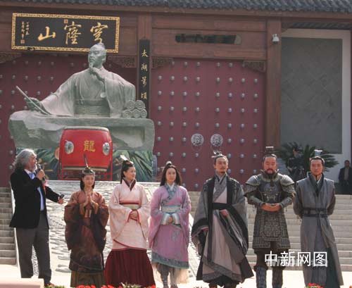 作為今年蘇州穹窿山孫子兵法文化旅游節(jié)的一項(xiàng)內(nèi)容,張紀(jì)中帶領(lǐng)《兵圣》的幾位主要演員亮相該劇的開機(jī)儀式,并接受媒體短暫訪問(wèn)。