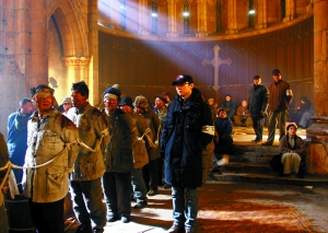 陸川:屠殺部分在片中會有長達(dá)20多分鐘,這部電影中群眾演員一次性動用最多的有2000多人,特技合成后會達(dá)到2萬多人,主要都是表現(xiàn)屠殺和戰(zhàn)爭場面的。