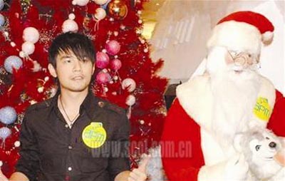 周杰倫與圣誕老人合影。