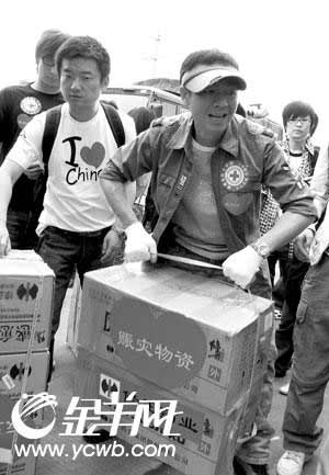 梁永斌一行這次去的是都江堰,他們帶的200多箱物資中,有災區(qū)同胞最需要的藥品、帳篷、消毒用品、生活用品甚至還有書籍。梁永斌告訴記者,早在出發(fā)前幾天,他就一直在網(wǎng)上查找災區(qū)的情況,發(fā)現(xiàn)災區(qū)急需帳篷的情況后,他們動用所有關(guān)系采購盡可能多的帳篷。充分考慮到“赤條條”從廢墟上爬出來的受災群眾的需要,他們還帶去了生活用品、換洗衣褲甚至女性用品等。