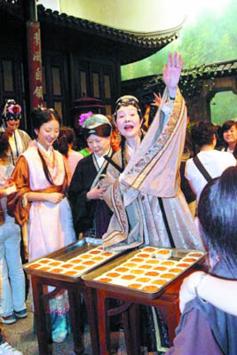 圖文:“王夫人”歸亞蕾片場(chǎng)發(fā)月餅