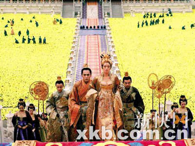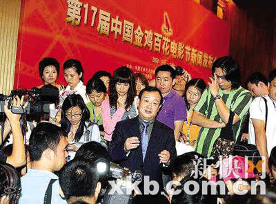 昨日上午11點(diǎn),第17屆金雞百花電影節(jié)新聞發(fā)布會(huì)在大連的富麗華酒店如期舉行,來(lái)自全國(guó)各地的百余家媒體記者們都齊聚一堂,聽(tīng)電影節(jié)組委會(huì)關(guān)于提名影片規(guī)則方面的老調(diào)重彈。正當(dāng)大家都有點(diǎn)昏昏欲睡的時(shí)候,一位來(lái)自吉林某電視臺(tái)的記者突然提出了一個(gè)問(wèn)題:“為什么讓大眾評(píng)委觀摩的影片由最初決定的10部變成了9部,獨(dú)獨(dú)缺了《滿城盡帶黃金甲》(以下簡(jiǎn)稱《黃金甲》)?”臺(tái)下的記者們聞言頓時(shí)議論紛紛,而臺(tái)上的電影節(jié)領(lǐng)導(dǎo)們也都表現(xiàn)得十分意外,由此引發(fā)了電影節(jié)開(kāi)幕最大的話題——《黃金甲》為何退賽了?