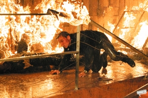 從《皇家賭場(chǎng)》開始,邦德再次回到寫實(shí)風(fēng)格,克雷格回憶說《量子危機(jī)》里他跑到疲于奔命。影片的時(shí)長(zhǎng)是所有邦德片中最短的,但動(dòng)作戲卻兩倍于《皇家賭場(chǎng)》。四場(chǎng)打斗戲不容錯(cuò)過,意大利的追逐、奧地利大眼睛劇院的群毆、巴拿馬夜宴的混戰(zhàn)及最后智利沙漠的終極PK。意大利追逐戲是現(xiàn)下非常流行的“跑酷”(Parkour)風(fēng)格,需要克雷格在建筑物間靈敏穿梭,拍攝前兩個(gè)月的魔鬼訓(xùn)練讓他身心俱疲。而克雷格覺得最困難的是一場(chǎng)船上打斗戲,因?yàn)榇頁u晃,令他覺得如同坐過山車,拍得膽戰(zhàn)心驚,那場(chǎng)戲花了兩個(gè)星期才拍成。
