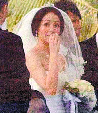 連日來關(guān)島氣候宜人,詭異的是,昨午3時的結(jié)婚典禮,天空卻逐漸灰暗,結(jié)婚團還沒出飯店就已開始下大雨,“芹甫結(jié)婚團”仍是硬著頭皮冒雨挺進。