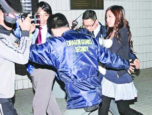 盡管有所準(zhǔn)備,被記者圍攻的張茆仍然有些不知所措。保安人員問張茆要到什么地方,她卻呆呆站在一旁沒有回答,任由記者拍照。保安問她要否先到保安室暫避,她立刻回答:“好!”隨后在4名保安的保護(hù)下躲到了校內(nèi)的設(shè)施管理中心,避開傳媒的追訪。