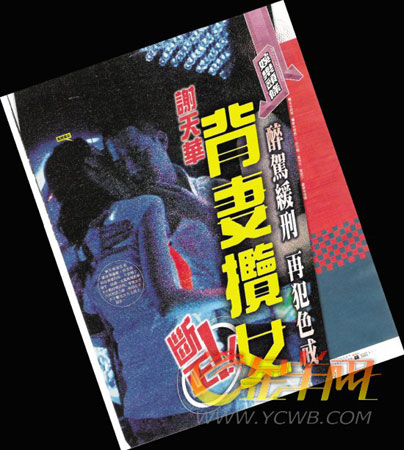 3月11日,因醉酒駕駛謝天華出庭接受判決,最后法官裁定罪名成立,判監(jiān)六星期,緩刑一年,停牌18個月。判刑前,謝天華曾帶著太太Tina去廟里求神庇祐,判刑日又與太太十指緊扣上庭。不過,據(jù)昨日出版的香港某雜志報(bào)道,獲得賢內(nèi)助無限支持的謝天華表面上擺出好男人的模樣,夜晚則背著妻子去夜店泡女孩子。