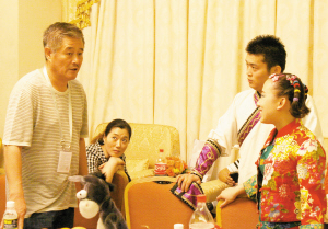 很少能看到趙本山和小沈陽(yáng)同臺(tái)表演,這次海南之行的首場(chǎng)演出,恐怕也是“劉老根大舞臺(tái)笑轉(zhuǎn)2009”全國(guó)巡演中唯一一場(chǎng)本山師徒同臺(tái)的表演,因?yàn)橛^眾是參加博鰲論壇的國(guó)際政要和經(jīng)濟(jì)專家。在演出后臺(tái),本山首先演練了一遍即將在舞臺(tái)上表演的“吹拉彈唱”,隨后就開始對(duì)自己的徒弟一一評(píng)點(diǎn)。別看徒弟們個(gè)個(gè)在舞臺(tái)上精神抖擻,但在面對(duì)如此大場(chǎng)面時(shí)不免有些緊張,紛紛對(duì)師父說(shuō)出自己的顧慮!皠e緊張,就當(dāng)是在咱們沈陽(yáng)中街基地演了!”“你這個(gè)口我看可以使,沒(méi)關(guān)系,出了事我兜著。”“你中間的那一段就不要加了,不好,不文雅!泵鎸(duì)徒弟,本山嚴(yán)肅認(rèn)真地對(duì)他們的表演提出要求。因?yàn)閷?duì)徒弟的表演和絕活爛熟于心,本山三言兩語(yǔ)就指出了他們的不足,并且提出了建議。有了他的點(diǎn)撥,徒弟們個(gè)個(gè)信心十足地走上了舞臺(tái)……