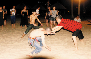 生活中的趙本山究竟是什么樣子,是小品《賣拐》中的大忽悠,還是電視劇《劉老根》中的睿智老漢?是電影《落葉歸根》中的質(zhì)樸農(nóng)民工,還是有著上億家產(chǎn)的娛樂(lè)巨鱷?雖然我們很難界定趙本山在演藝圈中的不同身份,但可以肯定的是,他在生活中和在舞臺(tái)上一樣,演繹著不同環(huán)境下的不同形象。日前,新報(bào)記者作為唯一隨行記者,見證了趙本山率“劉老根大舞臺(tái)笑轉(zhuǎn)2009”演出班底海南巡演的過(guò)程,感受到感性真實(shí)的“多面本山”。