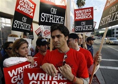 中新網(wǎng)11月7日電 好萊塢編劇罷工進入第三天,美國電視產(chǎn)業(yè)遭受沉重打擊,特別是脫口秀節(jié)目。據(jù)國外媒體報道,上千名編劇來到華納兄弟公司《絕望主婦》的拍攝場附近進行示威。“主婦”伊娃·朗格利亞與女星朱莉婭·路易斯·德利法斯為編劇們加油助威。伊娃更在現(xiàn)場大派比薩。